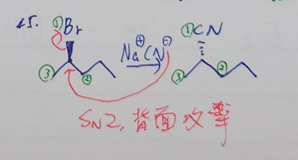 45. 下列何者為(R)-2-bromopentane ((R)-2-溴戊烷)與 NaCN (氰化鈉)在 DMSO 中反應的主要產物?