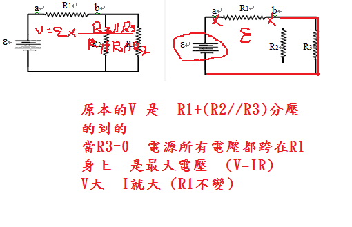 如 果 R3 的 電 阻 變 為 零,則 I 和 V 會如何變化?
