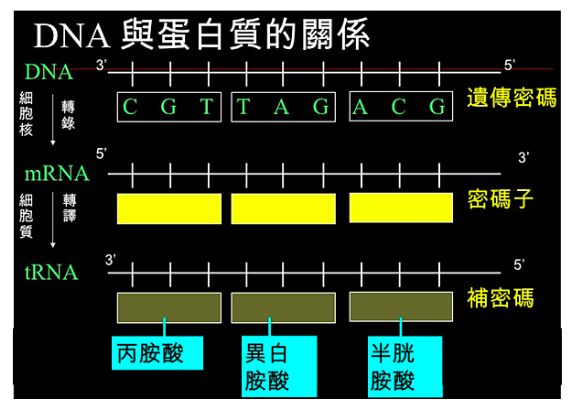 反密碼是3’-UGA-5’,所以倒過來寫就是5’-AGU-3’