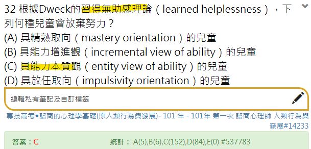 不能選a只是因為題目有明確提出這是dweck 的什麼理論