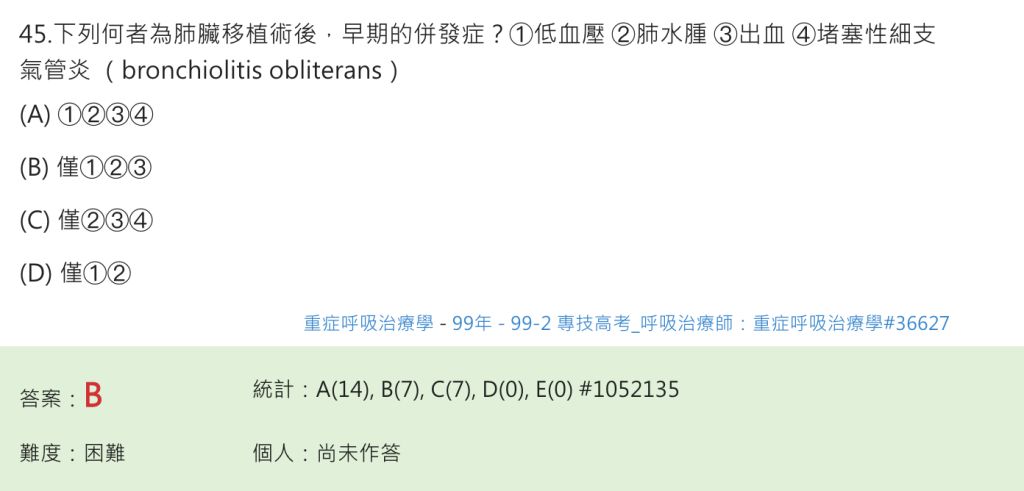 46.下列何者不是肺移植病患,早期移植肺失敗的原因?