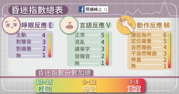 GCS的評估包括3方面,分數加總即為昏迷...