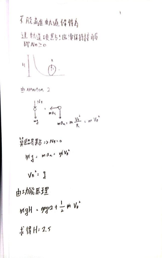 47.【圖24】有一小球在弧形平滑執道上向下滑動,在球滑到弧形 軌道頂點時不脫離軌道之最小高度H為: