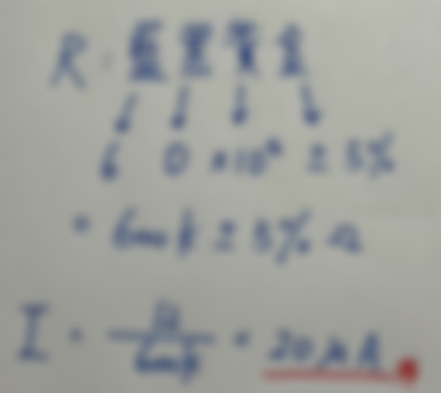 47.將 12 伏特的電壓加在一個色碼電阻上,若此色碼電阻之色碼依序為藍黑黃金,則此電阻流過電流為: