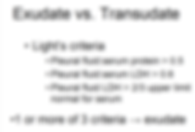 (D)「胸水中lactate dehydrogenase(PF LDH)值」大於「血清中 lactate dehydrogenase(serum LDH)正常上限值」 的2/3