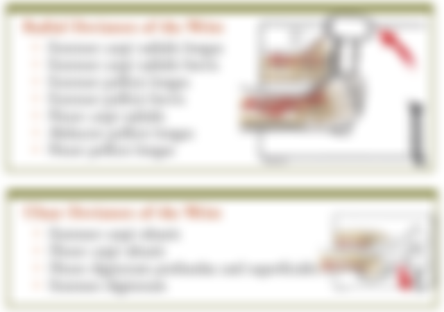 側伸腕肌 ②橈側伸腕肌 ③尺側屈腕肌 ④橈側屈腕肌 ⑤屈指深肌