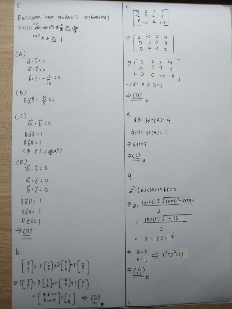 5 下列那一組 R 3 中之向量基於歐幾里得內積(Euclidean inner product)可作為規格化正交基底 (orthonormal basis)?