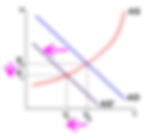 (D)央行調高利率,總合需求曲線右移,短期均衡產出減少與物價下跌