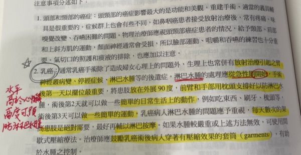 (C)乳癌術後患側肢體淋巴水腫時應限制活動