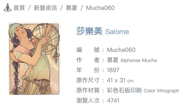 (Alfons Maria Mucha)於1897年完成的作品〈莎樂美〉,下列敘述何者正確?
