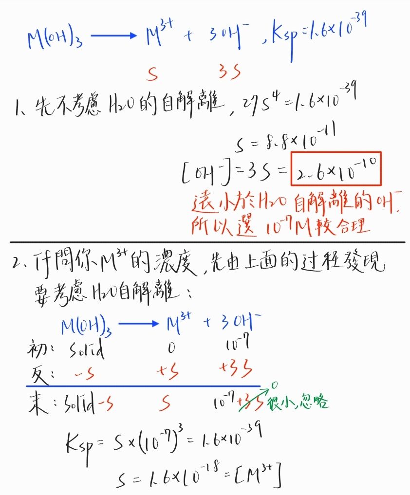5. 難溶性鹽類 M(OH)3 (Ksp =