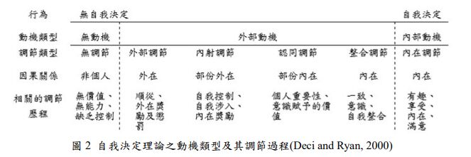 外在動機(中):外在調節>投射調節>認同調節>統合(整合)調節