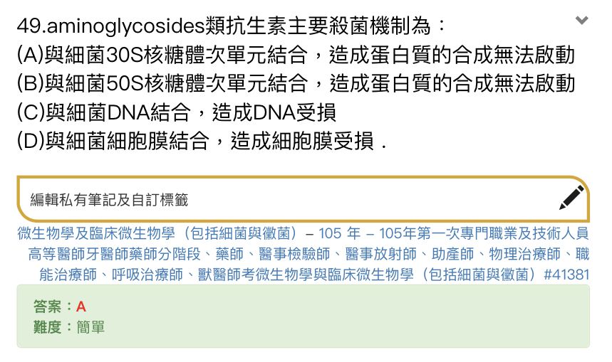 50.下列那些抗生素屬於aminoglycosides類?①amikacin ②tobramycin ③streptomycin ④kanamycin
