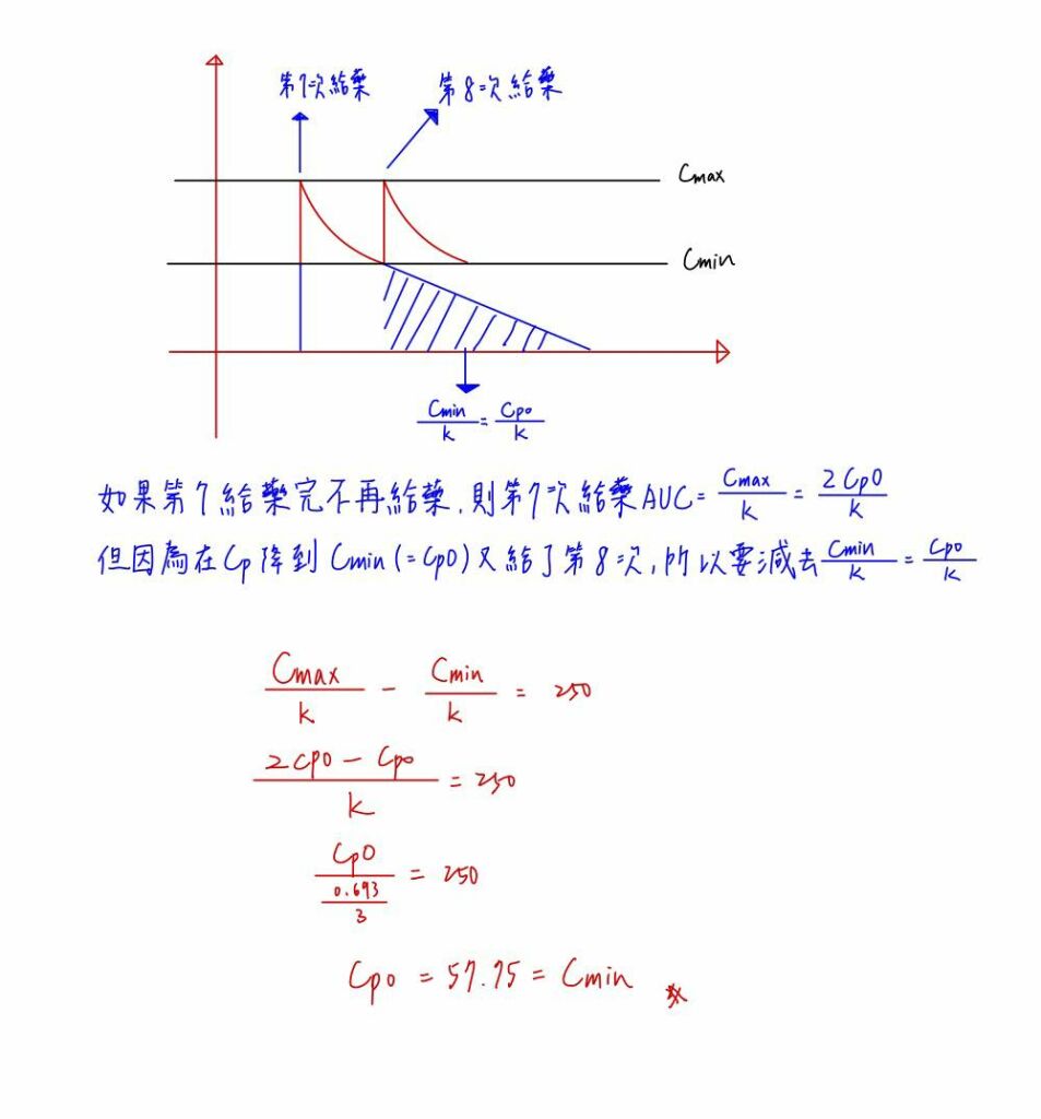 半衰期=給藥間隔,則Cmax=2Cp0,Cmin=Cp0
