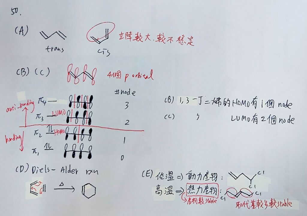 (D) 1,3-丁二烯可以和烯類 (alkene) 反應形成環己烯 (cyclohexene)