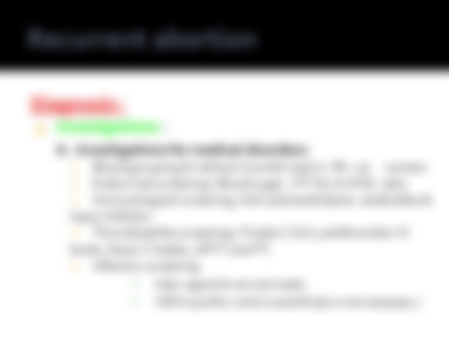 50. 30歲G3P0A3的女性,因為三次小於10週的習慣性流產,和丈夫一同前來求診。她之前做過唯一一次的檢查