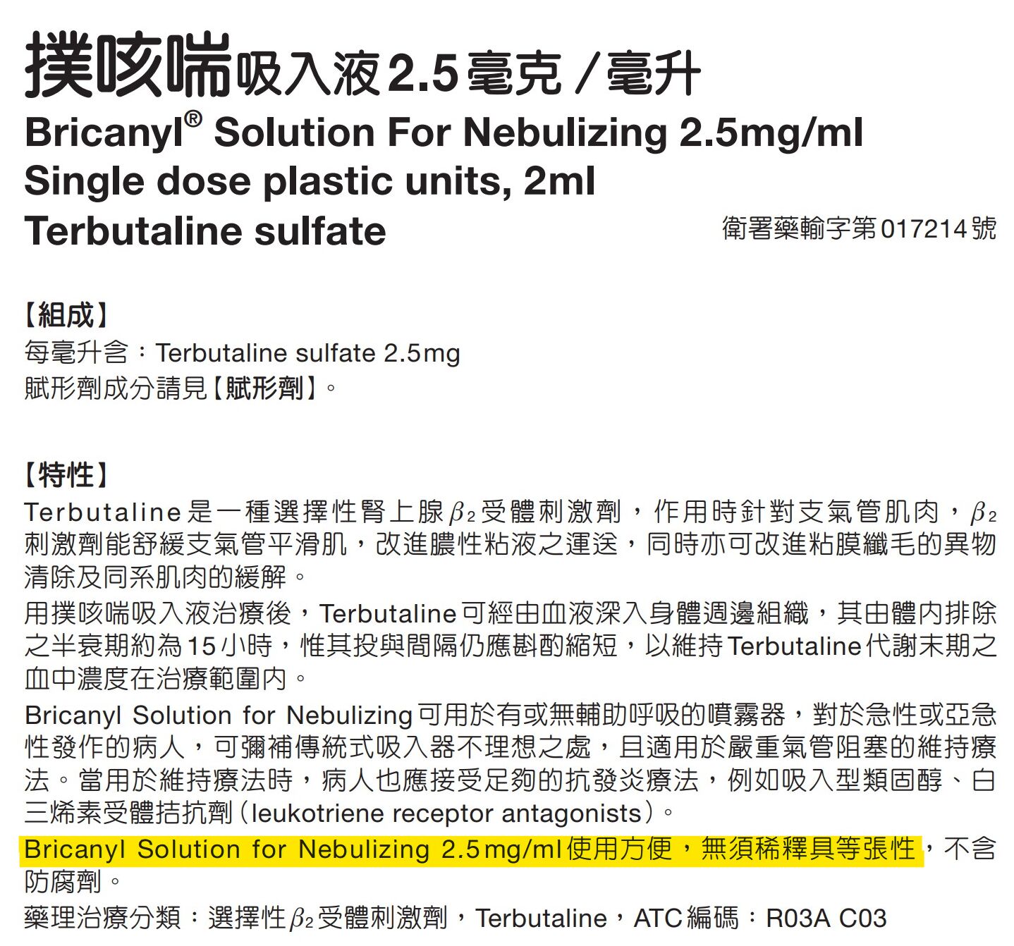 (C)此藥品須使用0.9% NaCl稀釋後,透過霧化器使用