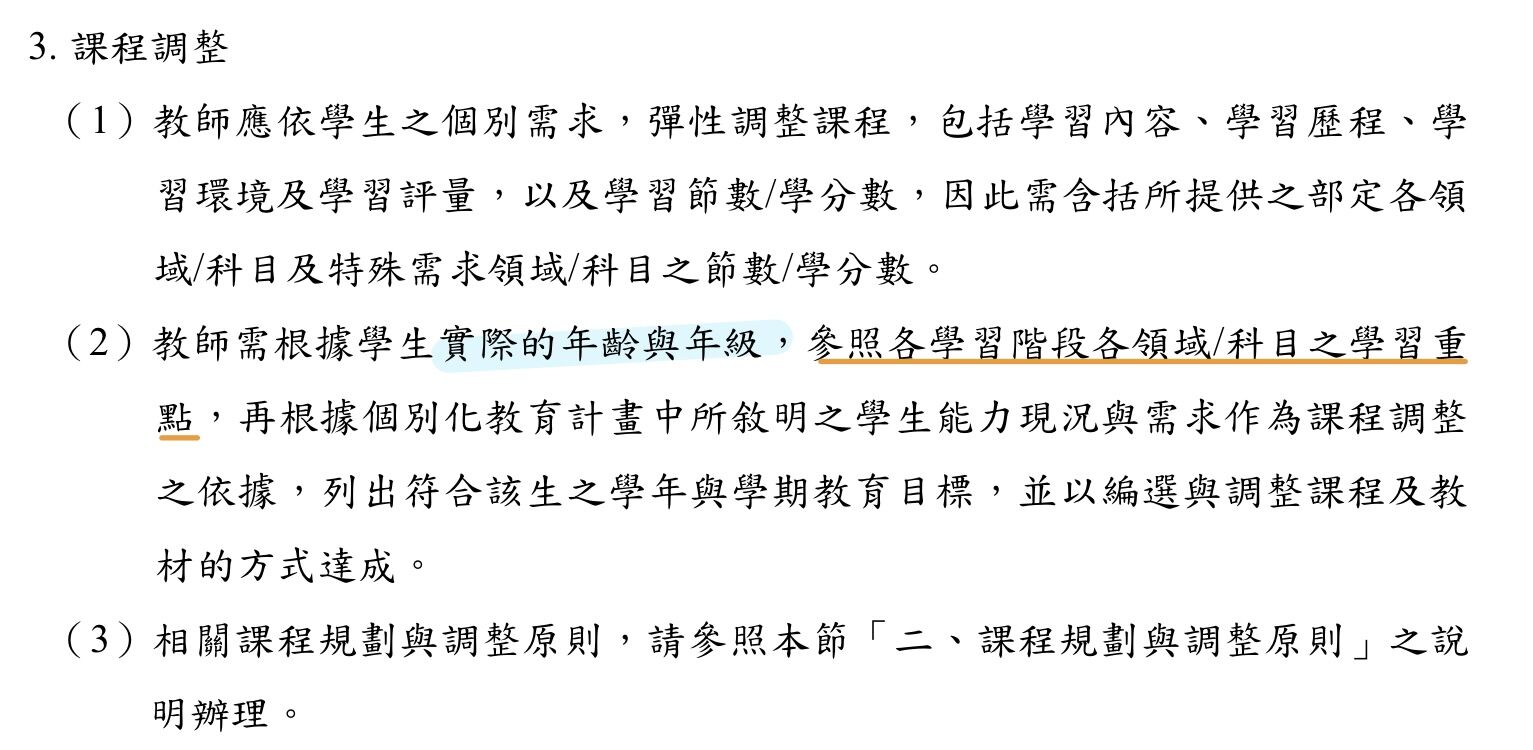 (A)區分輕度障礙類、中重度障礙類課程綱要