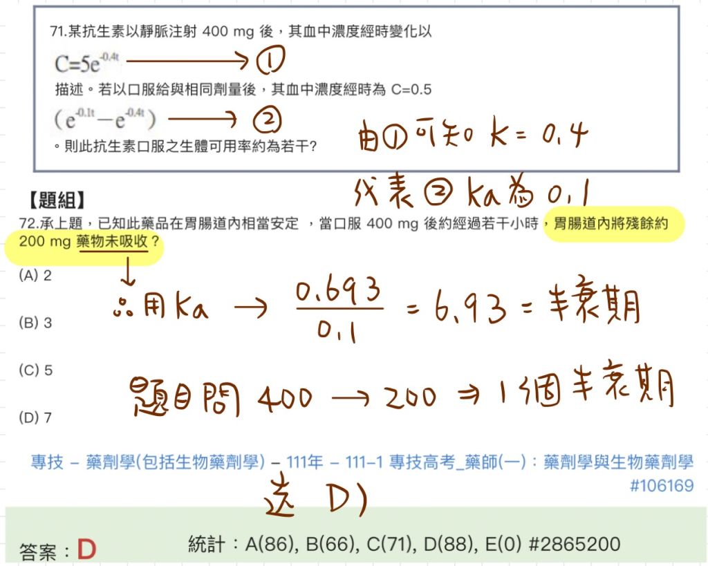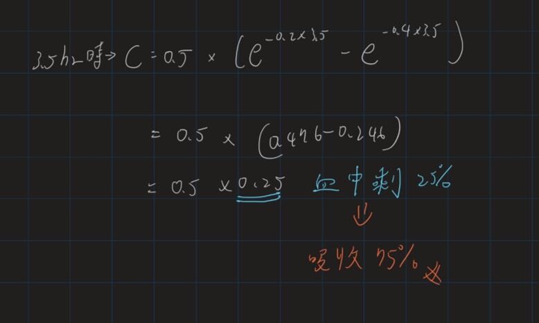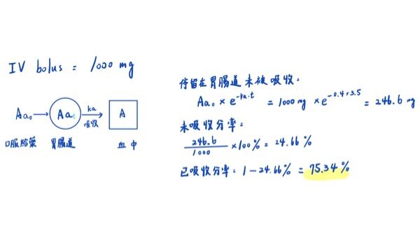 [1-e^(-kat)]就是從腸胃吸收到體內的比例 「本題問的!」
