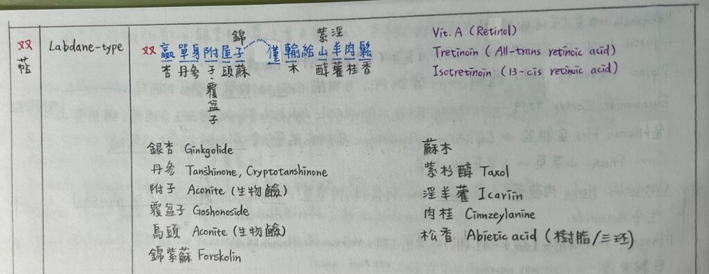 彩葉草、銀杏、紫杉醇 、烏頭、附子、丹參 雙萜