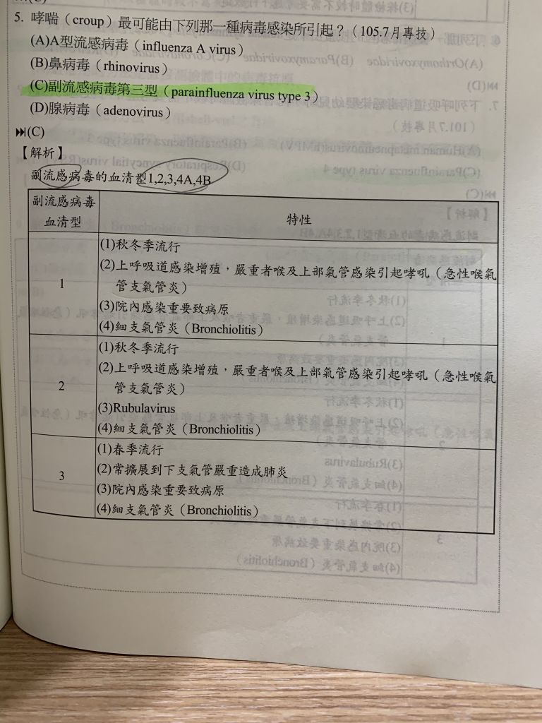(C)副流感病毒第三型(parainfluenza virus type 3)
