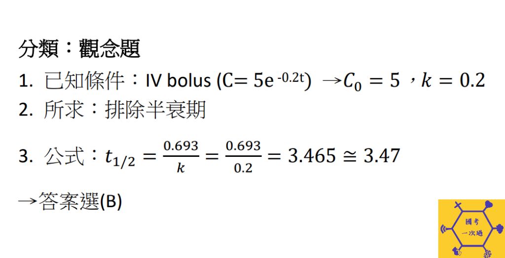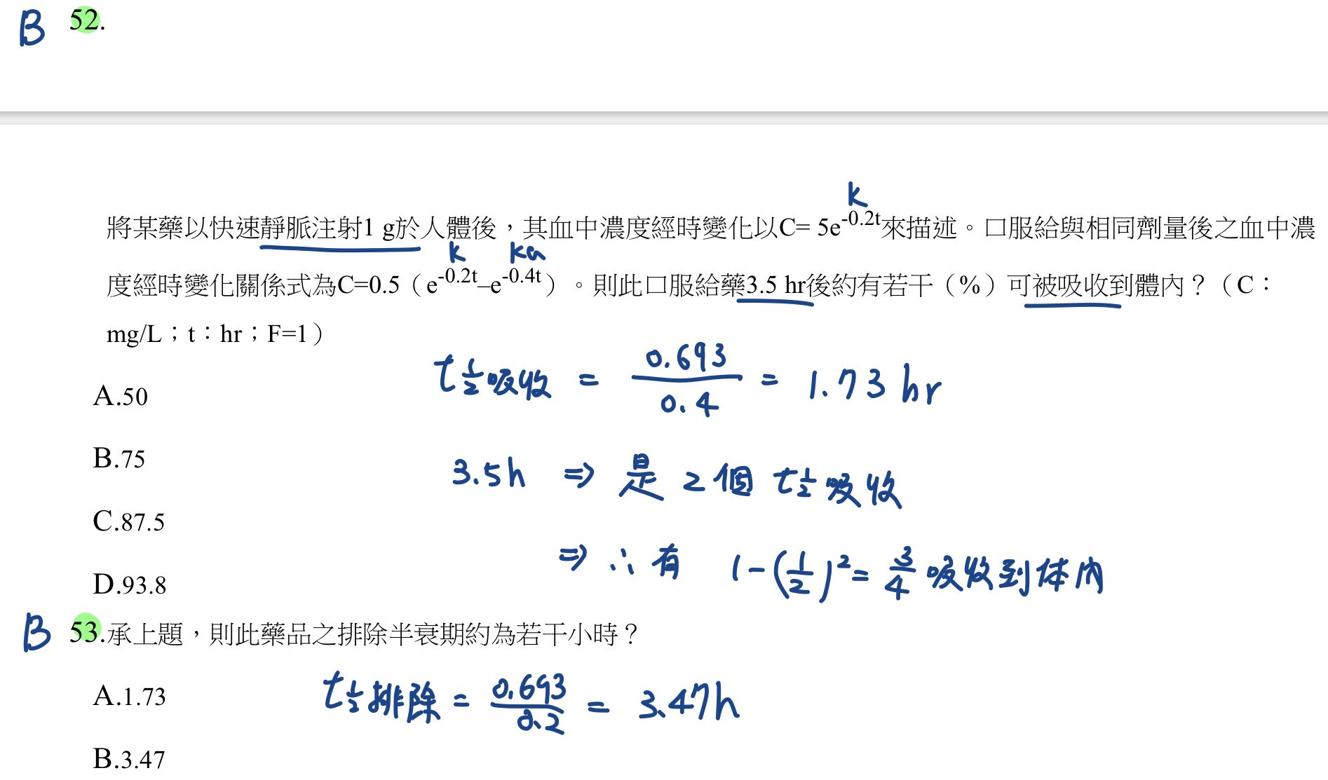53.承上題,則此藥品之排除半衰期約為若干小時?