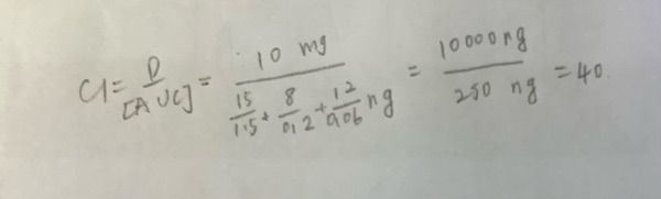 B1寫的AUC=Cp/k是最後一個採樣點到無限大時間的公式歐,不是整個AUC的公式