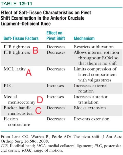 pivot shift (test 前外側旋轉不穩定和acl 破裂)