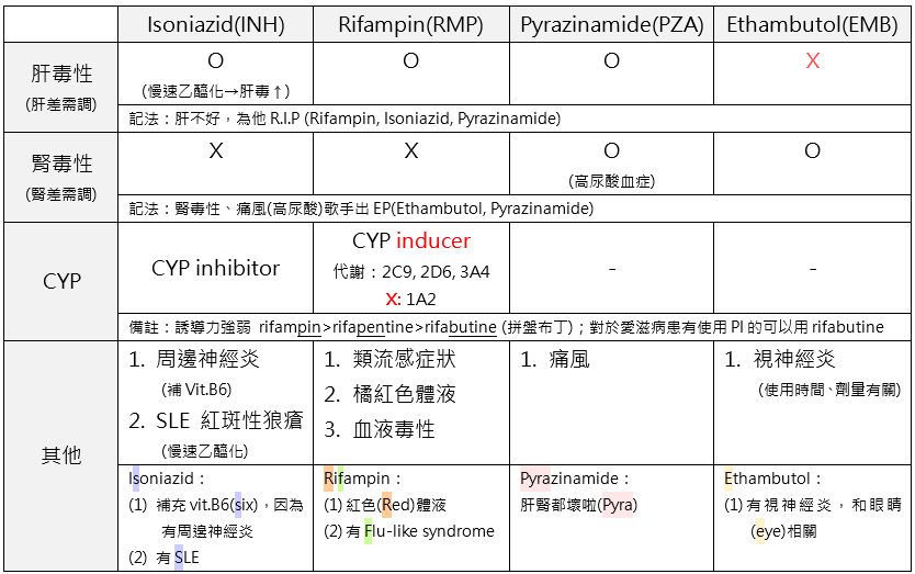 肺結核一線藥物比較(感覺好常出現XDDDDD)