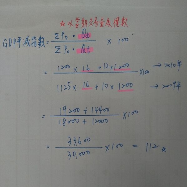 56.假定一個經濟體只生產電腦與麵包兩種產品,且生產不須使用中間投入: 以2009年為基期,則2010年國內生產毛額平減指數(GDPdeflator)為: