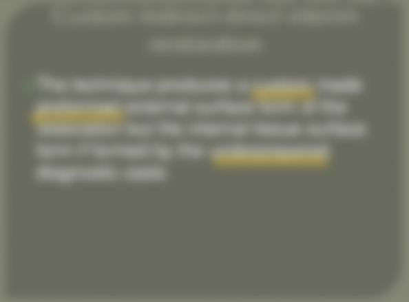 確?①使用預製牙冠外殼(preformed crown form) ②使用修形不足(underprepared)的診斷模型 ③於病 患口內完成組織面型(tissue surface form) ④相較於間接技術(indirect technique),有比較精確的牙冠邊 緣(margin)