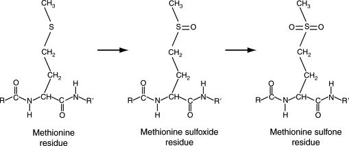 56.Methionine結構轉變為其sulfoxide或sulfone衍生物,是進行下列何種反應?