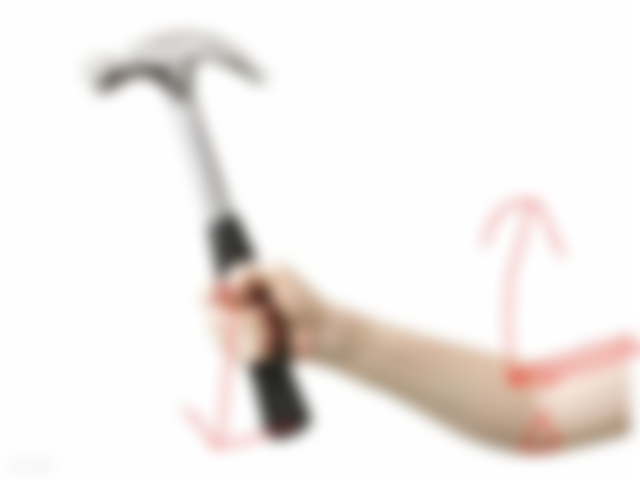 57.以右手將鐵鎚拿起來檢查有無損毀,此動作對於肘關節屈曲肌肉群,係應用下列何種槓桿原理?