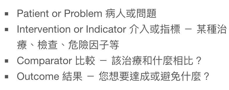 57.臨床照護指引發展常運用「PICO」來呈現問題,以下代表含意何者不正確?
