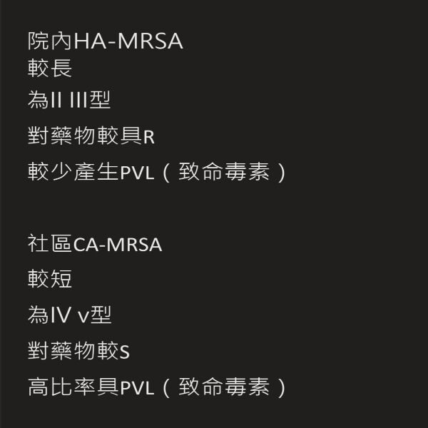 (A)CA-MRSA主要以SCCmec type IV或V為主
