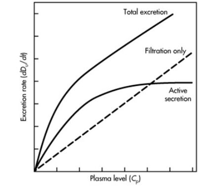 (D)在腎功能正常的情況下,此藥物有主動分泌