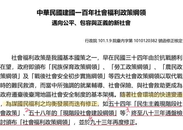 節錄自中華民國建國一百年社會福利政策綱領