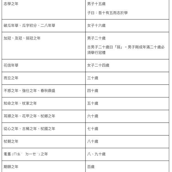 資料來源:https://sites.google.com/a/fjsh.cy.edu.tw/chi/4-zhi-shi-bai-ke/nianlingbiechengduizhaobiao