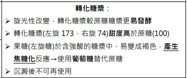 轉化糖漿用白話來說其實就是蔗糖在酸中或加熱水解後形成的果糖及葡萄糖混合物