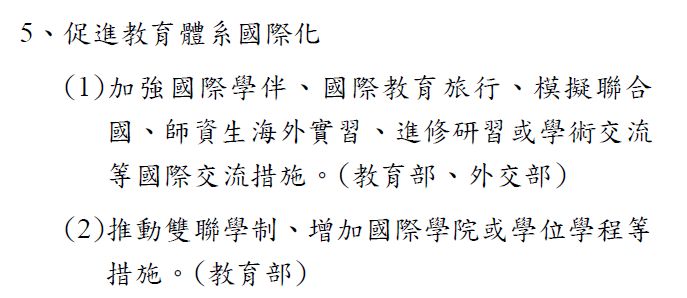 (一)全面啟動教育體系的雙語活化、培養臺灣走向世界 的雙語人才