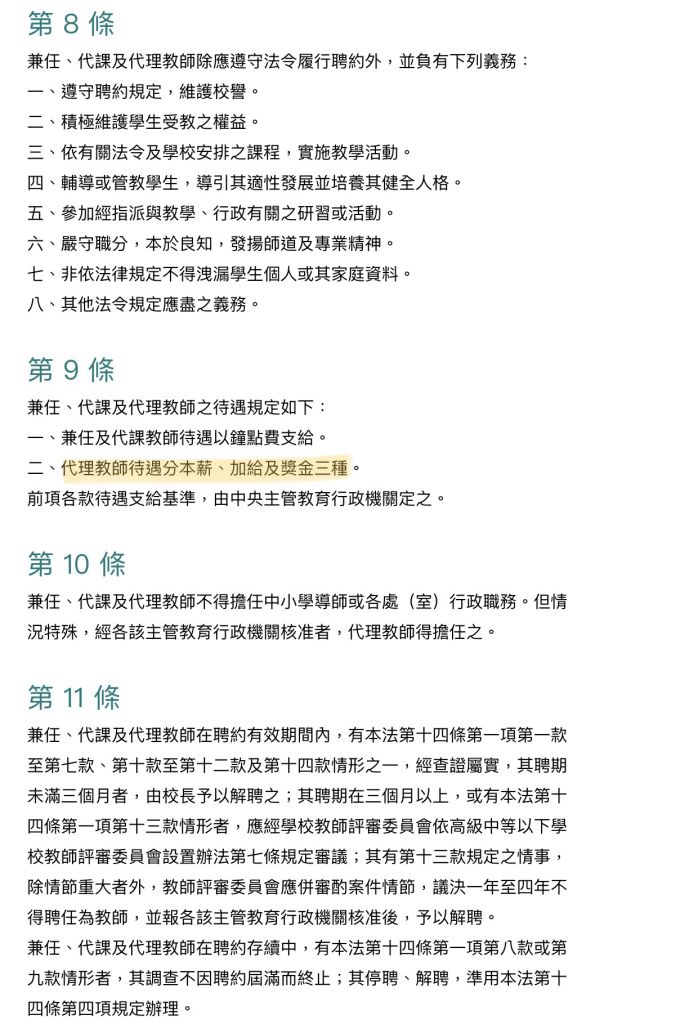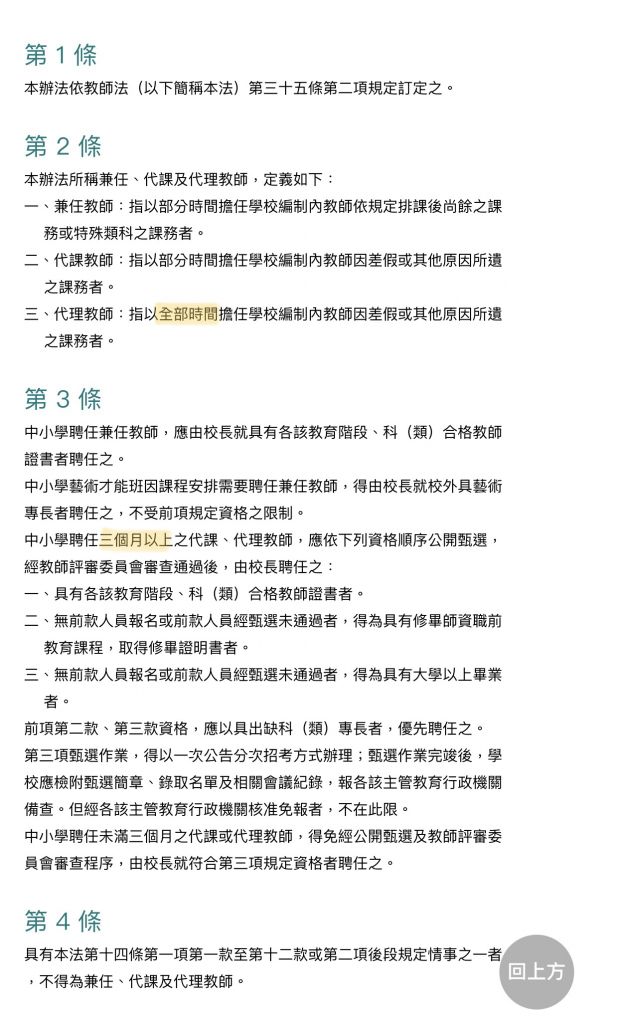 (B) 代理教師:指以部分時間擔任學校編制內教師因差假或其他原因所遺之課
