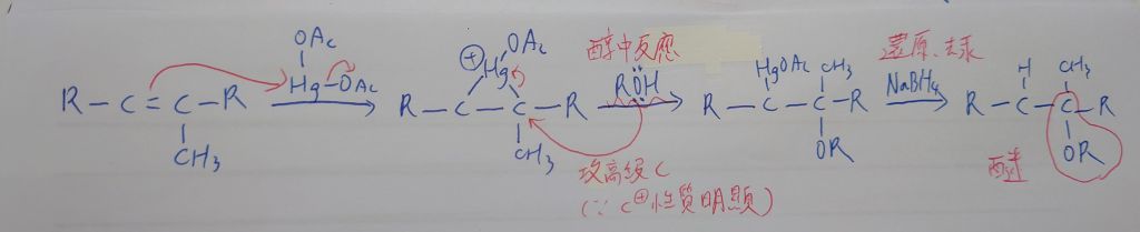 6. 在醇中,烯類若與Hg(OAc)2反應後,再以NaBH4還原則可得_________。