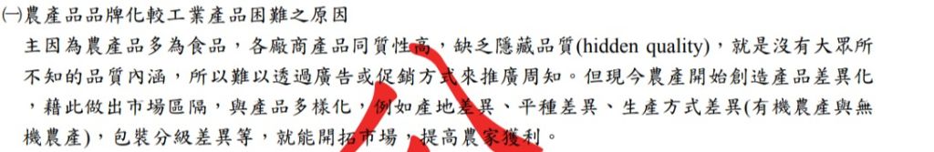 6. 農產品品牌化之最大困難是產品缺乏隱藏品質。