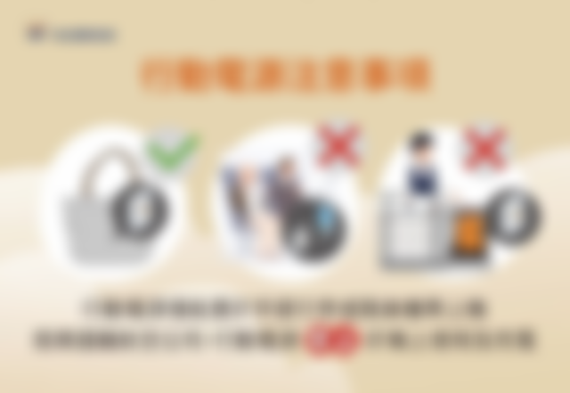 6. 近期常發生行動電源於飛機飛行途中於機艙自燃的飛安事故,因此航空公司為強化飛行安全需求,對行動電源於飛行中的攜帶規則更加嚴謹,下列對行動電源於飛行中的安全規則敘述,何者正確?