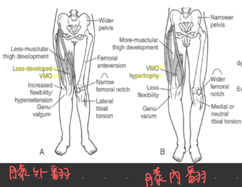 膝外翻:脛骨外扭、股骨前傾、扁平足、寬骨盆