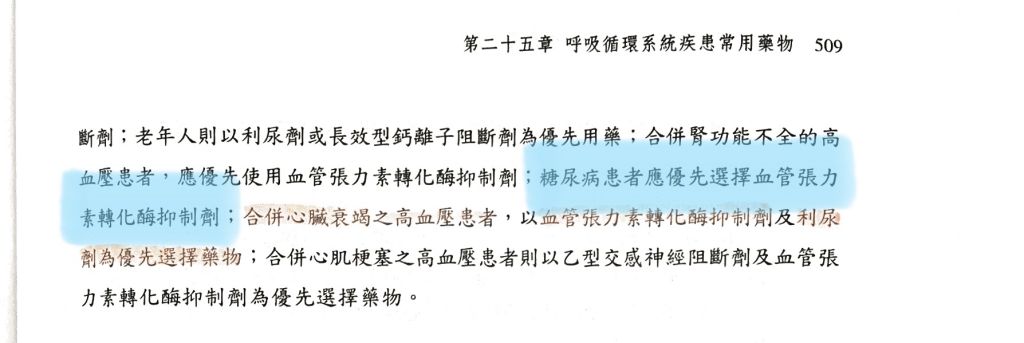 高血壓合併糖尿病優先選擇血管張力素轉化酶抑制劑ACEI