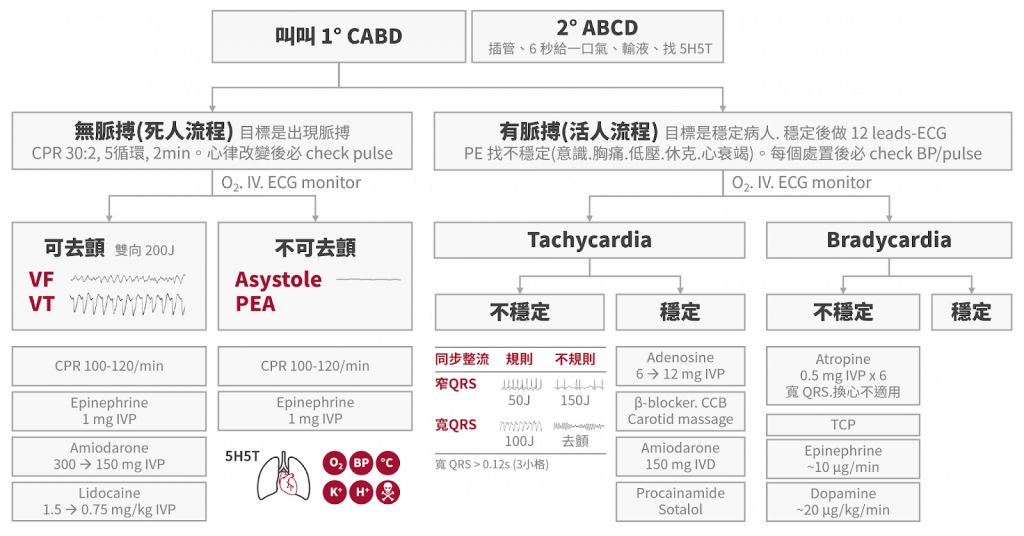 (A)呼救要求幫忙,給予同步電撃200焦耳