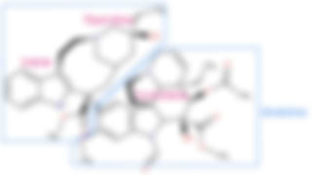 Indole:長春花 Vinblastine、Vincristine(bisindole)、Catharanthine