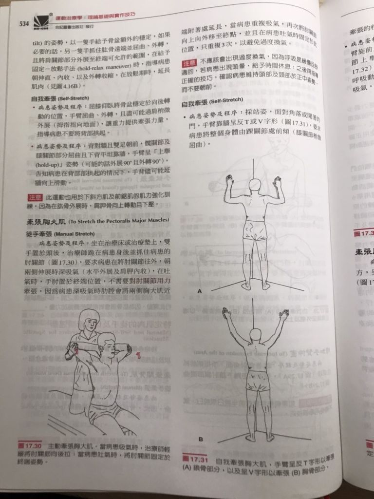 部分(sternal portion)的胸大肌時,雙手應如何擺位在兩側牆上再牽拉?