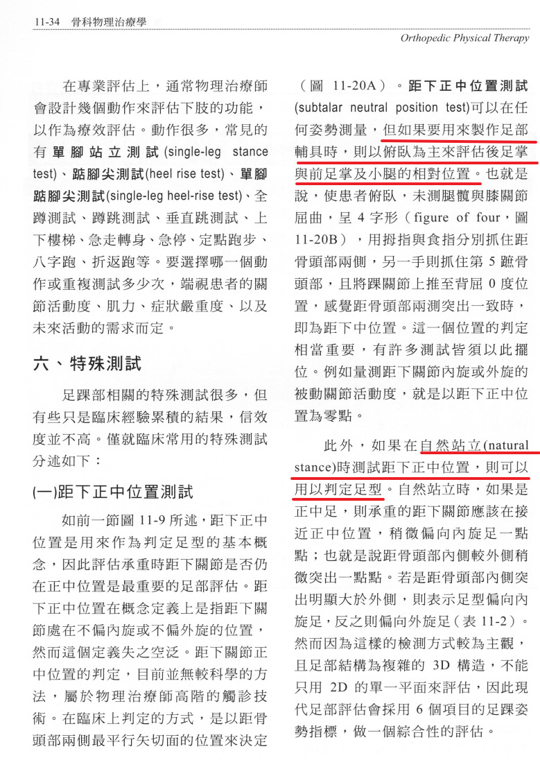 第一是距下關節正中位置是可以在所有姿勢測,不代表一定是非承重,且測試結果符合承重時跟骨微外翻、非承重時平行或微內翻。